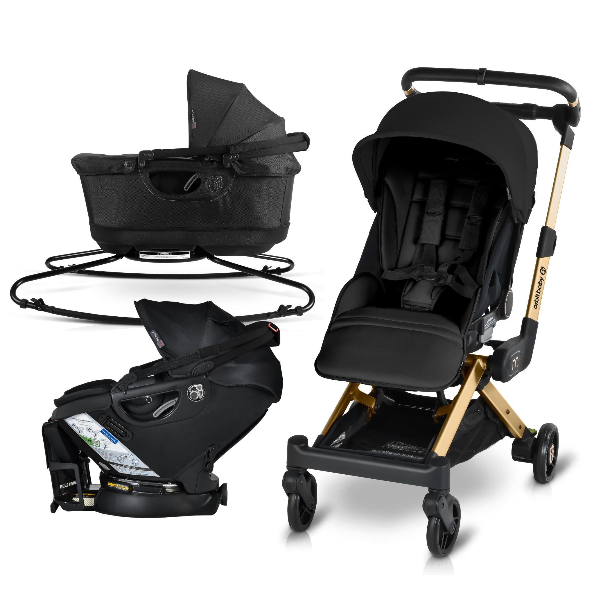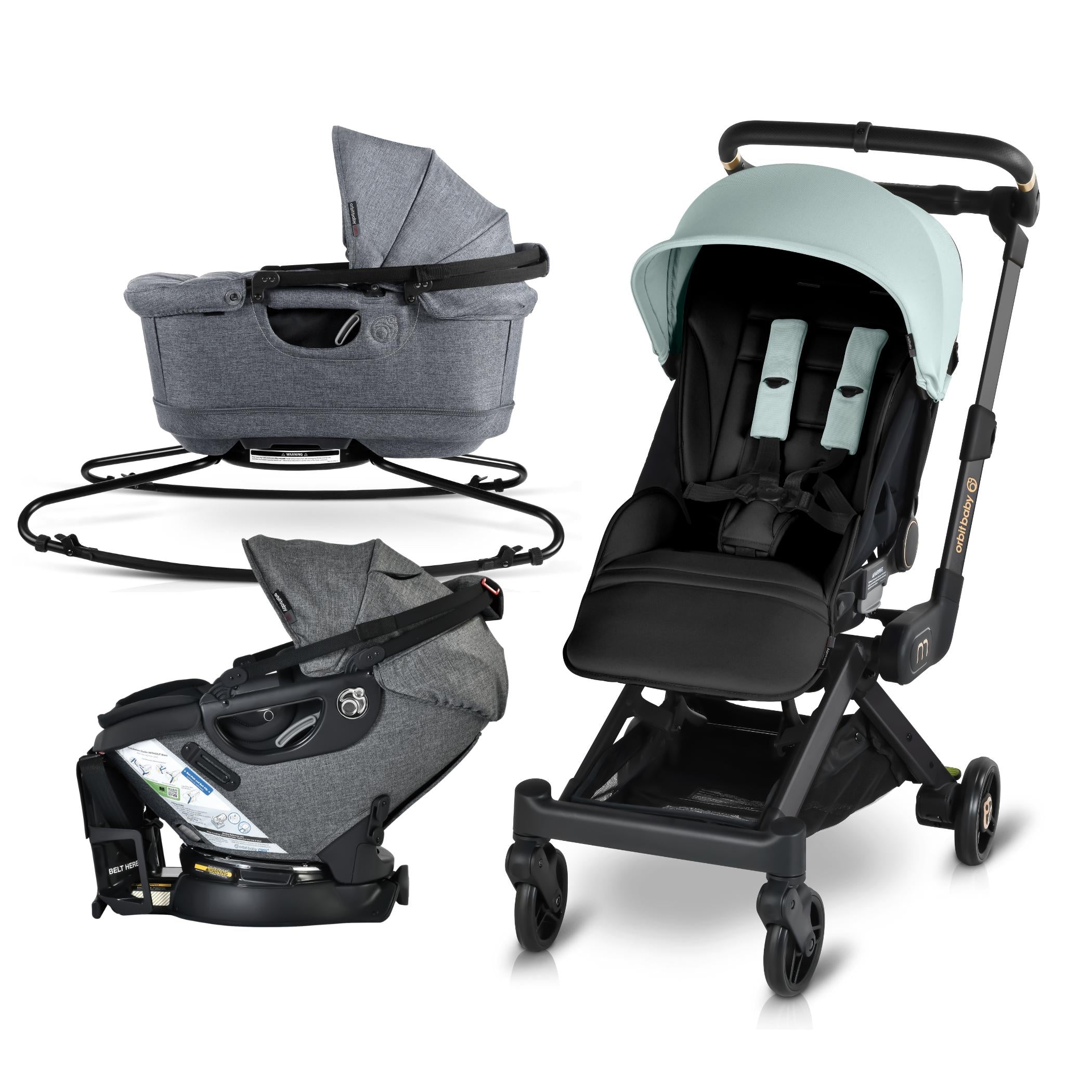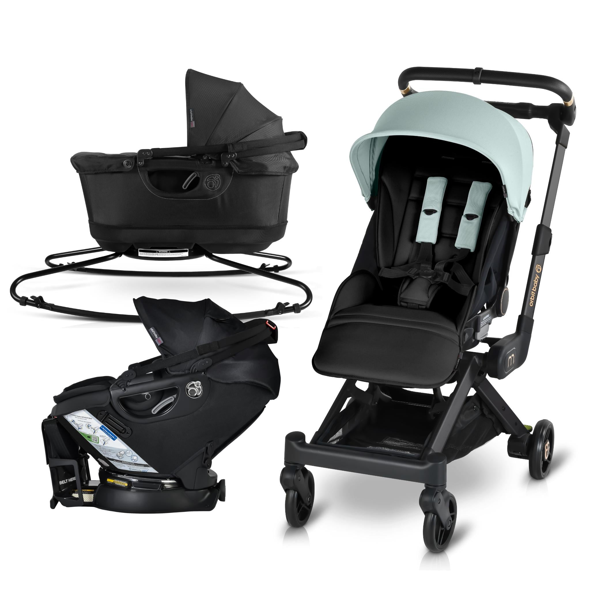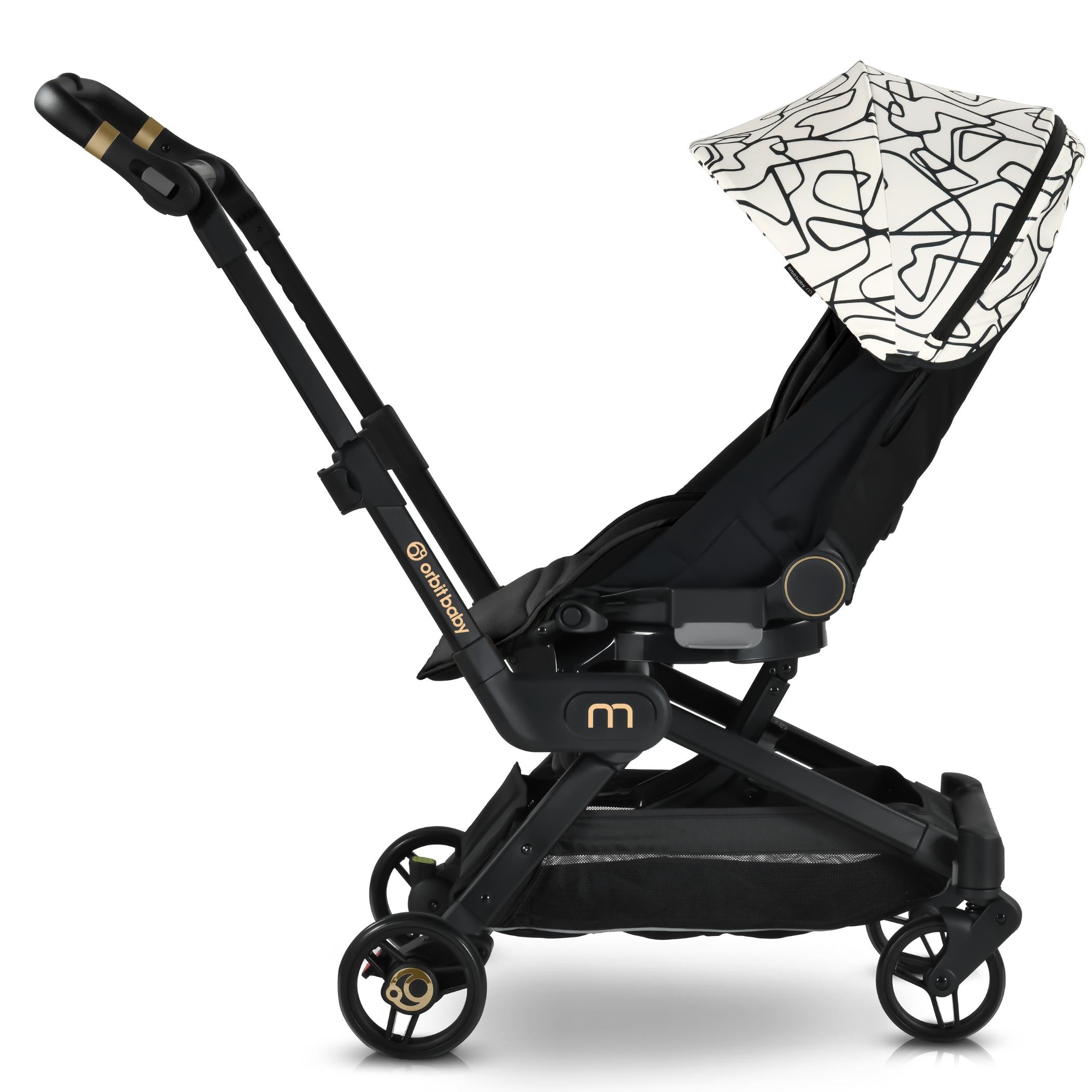 The M+ Stroller is compatible with the Orbit Baby Infant Car Seat, Bassinet and G5 Stroller Seat.